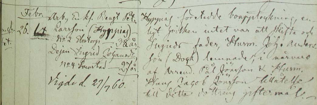 There was a record about Ingrid and Bengt's marriage dated February 26, 1860. It says: