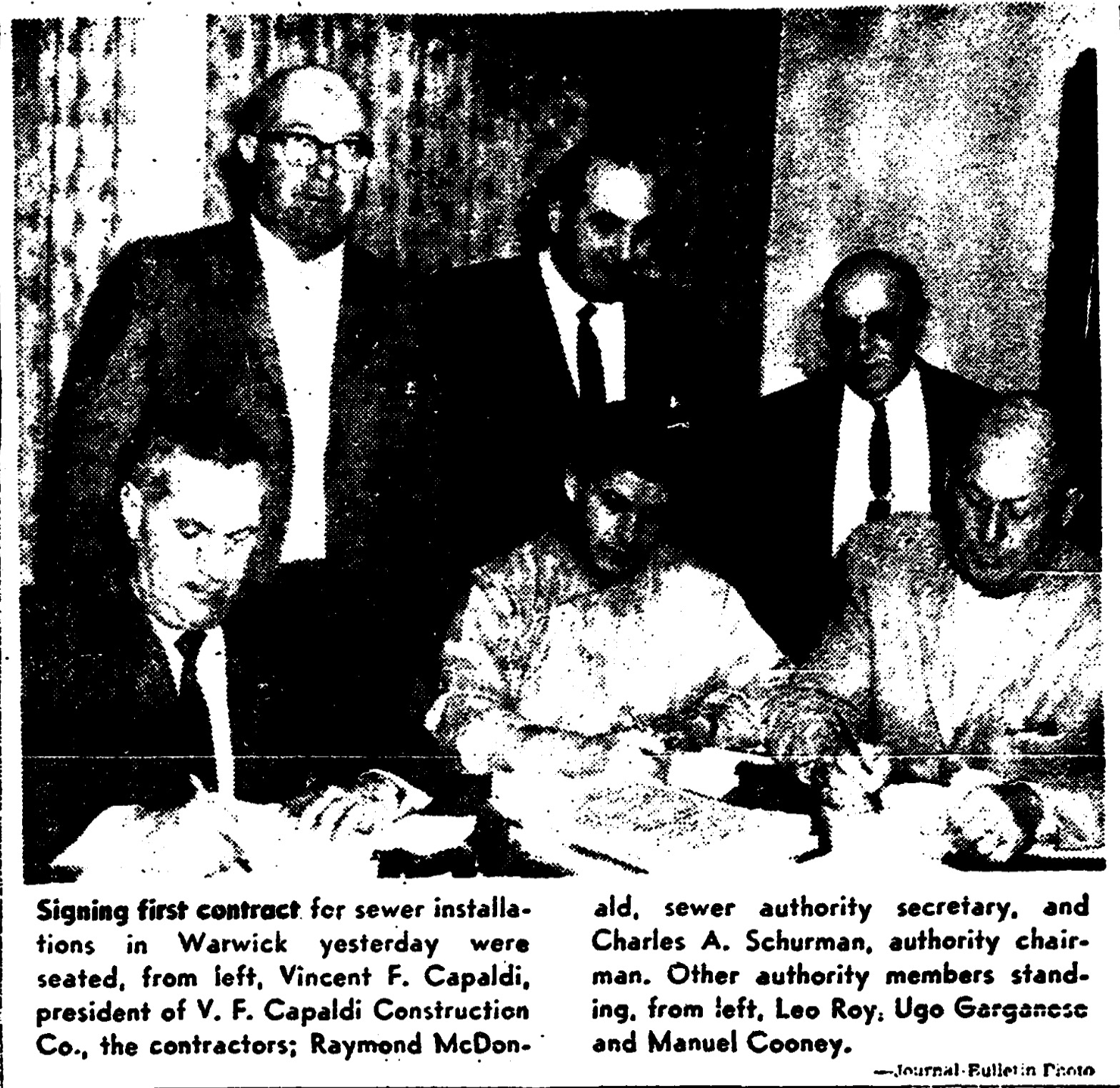 The referendum was held December 4, 1962 and it was overwhelming approved by the voters. A $4,000,000 bond was issued for the sewers. In 1962 Warwick was the only city in the state without a sewer system.